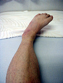 血管支配領域の脳神経(細胞)への血液の供給が断たれ、血管支配下の中枢神経機能のダウン。運動神経に関しては片麻痺症状として、ショック期には手足の筋肉の弛緩(しかん)がみられ、体幹の半分も弛緩し、立位を確保する事もできない状況になる。仰臥位にて体位の確保をしながら、痙性期に備えての手足の肢位を確保する。